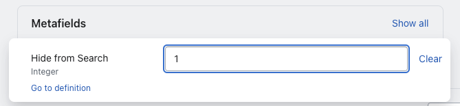 The first time you want to remove a product from Shopify search, you will need to set up a custom field definition.