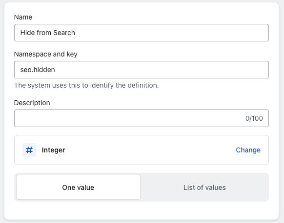 "namespace" : "seo" "key" : "hidden" "value" : 1 "value_type" : "integer"
